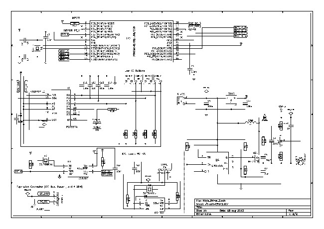 The RTC and user IO and set through a I2C bus. User IO is handled with a PCF 8574 IO expander, with my IOExp library.